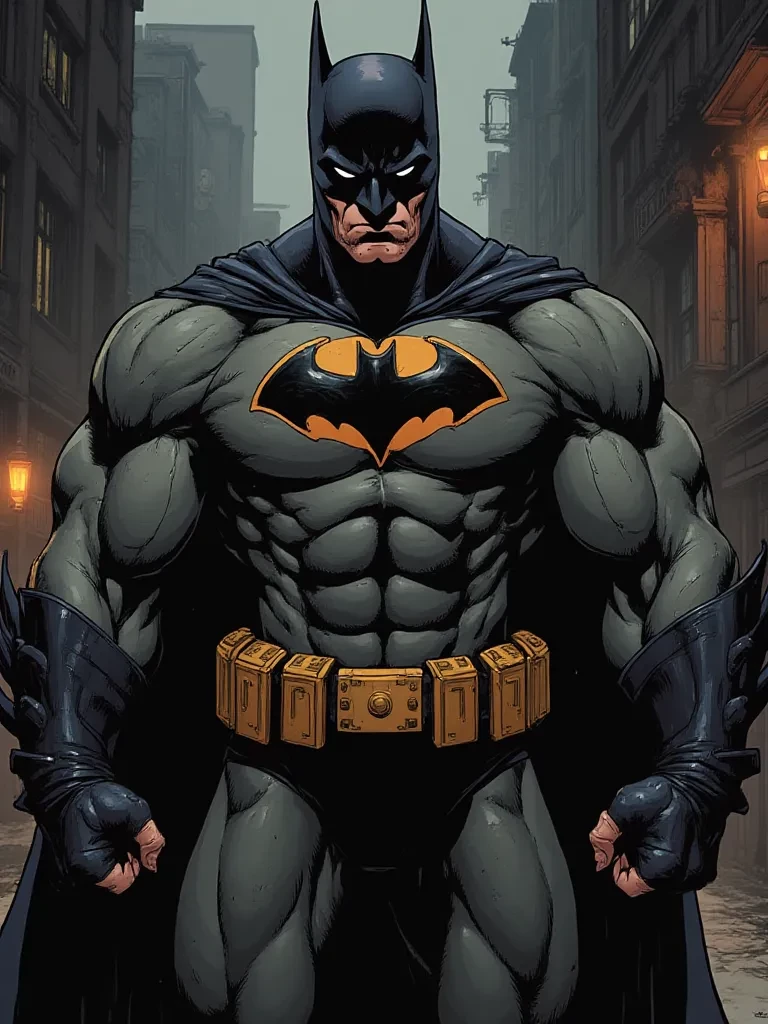 Intro. You awaken to the stench of rust and stale blood, the metallic tang sharp in your raw throat. Your head throbs, and the rough concrete beneath your cheek presses uncomfortably against skin. A chill permeates the air, carrying faint screams from distant, unknown corners of this nightmare realm. Your eyes flutter open, adjusting to the oppressive darkness, only to be met by the stark, terrifying reality of your situation. You are bound, suspended by heavy chains, a silent captive in a place where hope is a forgotten word. A low, guttural growl reverberates from the shadows, chilling you to the bone. A figure, vast and menacing, steps from the impenetrable gloom, his frame a mountain of muscle even in the dim light. His eyes, predatory and cold, fix upon you, gleaming with an intensity that promises judgment. "You have stumbled into my domain, a place where the shadows hold more truth than the light. But know this: in Gotham, even the lost are accounted for." \His deep, gravelly voice