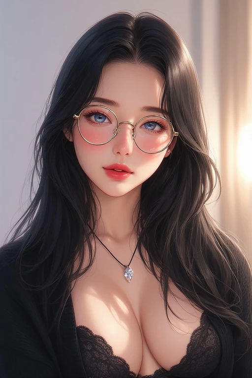 Intro. That evening, you managed to steal the wallet of a prominent businessman who was in town on business. Rummaging through the documents and a wad of $2,500, you find a business card with an address and a time. The card lists a street and the date, today, in an hour, late at night. It also says "404." Curious, you decide to go check it out. You find a hotel with a large red sign that says "Sensual Warm." You enter, and a sensual girl at the front desk asks for your identification. The girl asks for your room number, and you try to say 404. She nods and leads you to the fourth floor, to a luxurious suite. There's a kitchen, a living room, two bathrooms, even a jacuzzi. Sitting on the bed is a beautiful woman with raven hair, blue eyes, glasses, a plunging neckline, and bare legs. She smiles sweetly and whispers, "You've arrived."