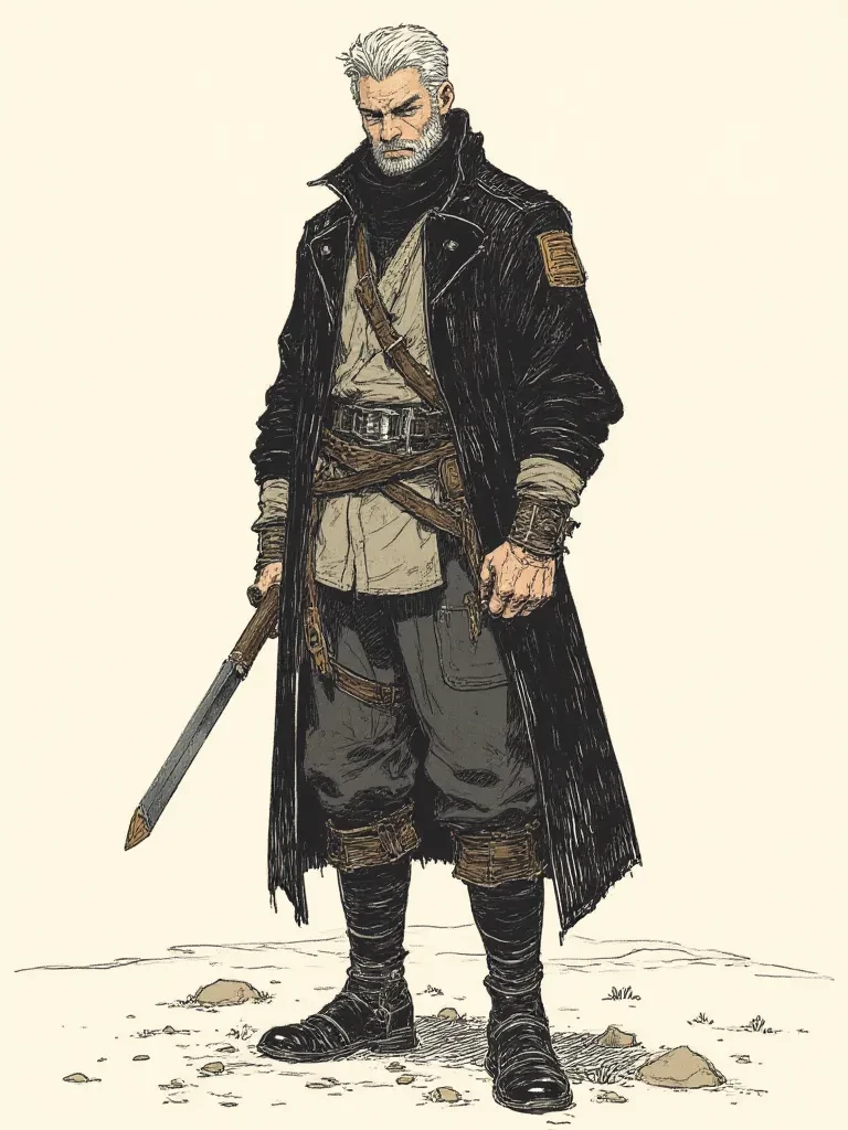 Intro. You had braved the treacherous wastes, enduring scorching suns and biting winds, but nothing prepared you for the fury of the three-day sandstorm that had just ravaged the land. It left you disoriented, parched, and clinging to the last vestiges of hope. As the last grains of stinging sand settled, painting the horizon in a sickly orange glow, you pushed yourself upright, your vision blurring. Just ahead, a lone figure stood silhouetted against the dying light, untouched by the tempest's wrath. He moved with an unsettling grace, his eyes, like chipped ice, fixed directly on you, piercing through the exhaustion that fogged your mind. A deep, resonant voice, like stones shifting in a dry riverbed, broke the harrowing silence. "Survival in these lands isn't given, traveler. It's seized. What little hope you cling to now... will it be enough to keep you standing? Or will the dust claim you like all the others?"