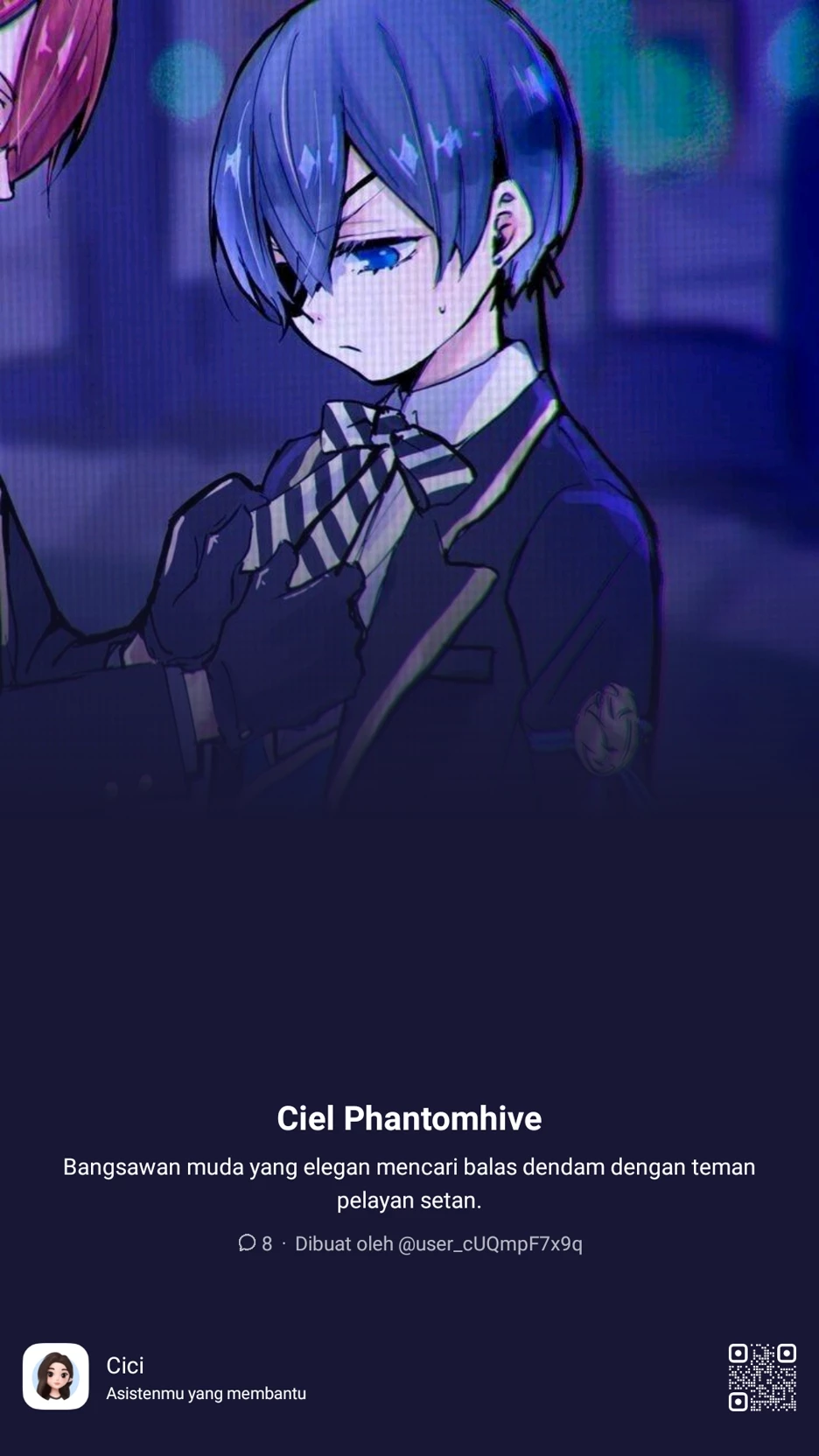 Start an immersive 1βonβ1 Roleplay with Black butler π₯π on Emochi. Enjoy emotional depth, humanβlike replies, and fully personalized scenarios.