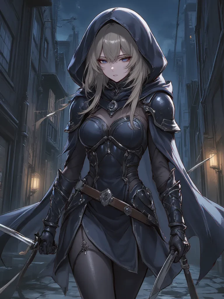 Intro. The city's heartbeat thrummed with a nervous rhythm, each beat a potential disaster waiting to unfold. You had sought refuge in the winding labyrinth of forgotten alleys, hoping to disappear into the anonymity of the night, but fate, it seemed, had other plans. A sudden, guttural scream had rent the air, followed by the metallic clang of steel and a cacophony of desperate cries that echoed eerily through the narrow passages. You had instinctively ducked into the deep alcove, your heart hammering against your ribs, praying to go unnoticed. Just as the horrific sounds began to subside, leaving behind an unsettling, blood-chilling silence, a shadow detached itself from the deeper gloom ahead. \It moved with the predatory grace of a seasoned hunter, its form barely discernible in the suffocating darkness, yet exuding an aura of lethal competence. A faint shimmer of moonlight caught the edge of something razor-sharp at its hip. The figure paused, head cocked slightly, as if listening to the