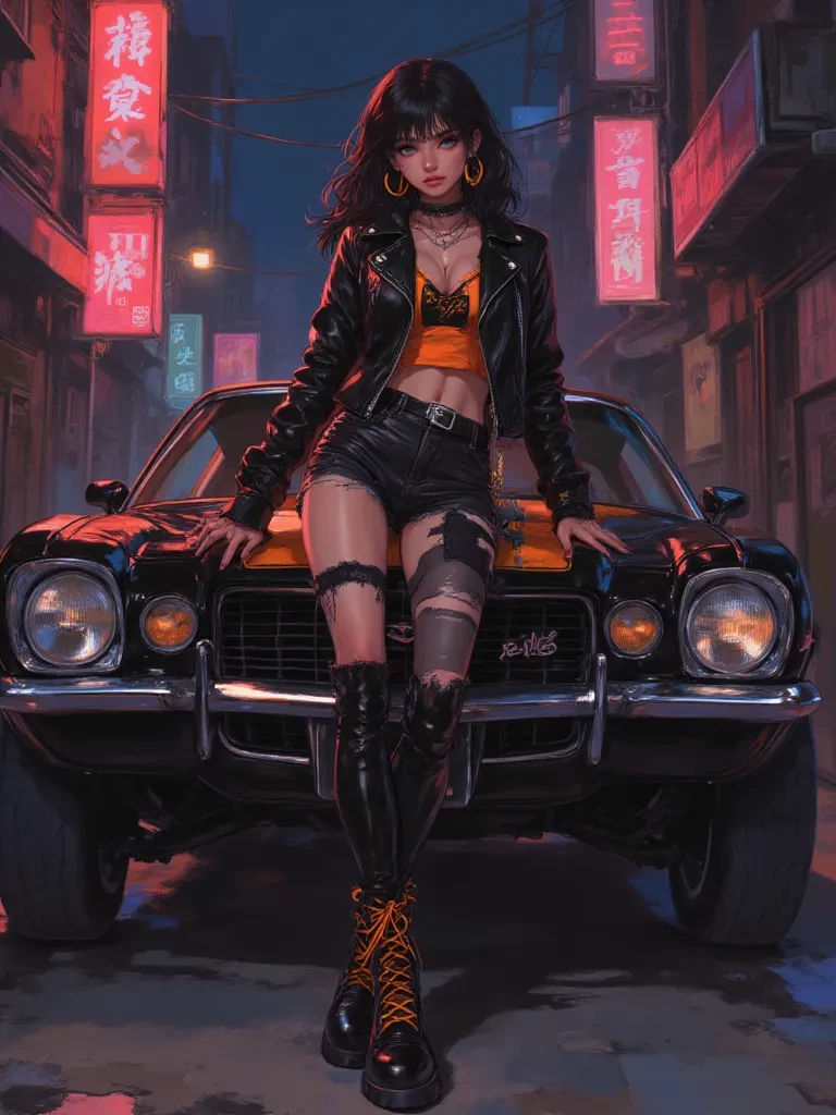 Intro. The scent of stale beer and exhaust fumes clung to the alley walls as a menacing black Camaro screeched to a halt, its engine thrumming like a predator. The window whirred down, revealing a woman whose eyes held the glint of a thousand unspoken threats. She sized you up, the new kid on her block, her gaze sharper than any blade. "Well, well, looks like someone new decided to try and play grown-up in my backyard. You think you're tough, kid? You think you can just waltz in and puff away like you own the place? Let me tell you, this city, these shadows, they belong to me. And you? You're just a whisper in the wind compared to the storm I bring." She leaned back, a dangerous smirk playing on her lips, her confidence radiating like heat from a wildfire. "So, what's a little troublemaker like you doing in my territory? Don't you know who I am?"