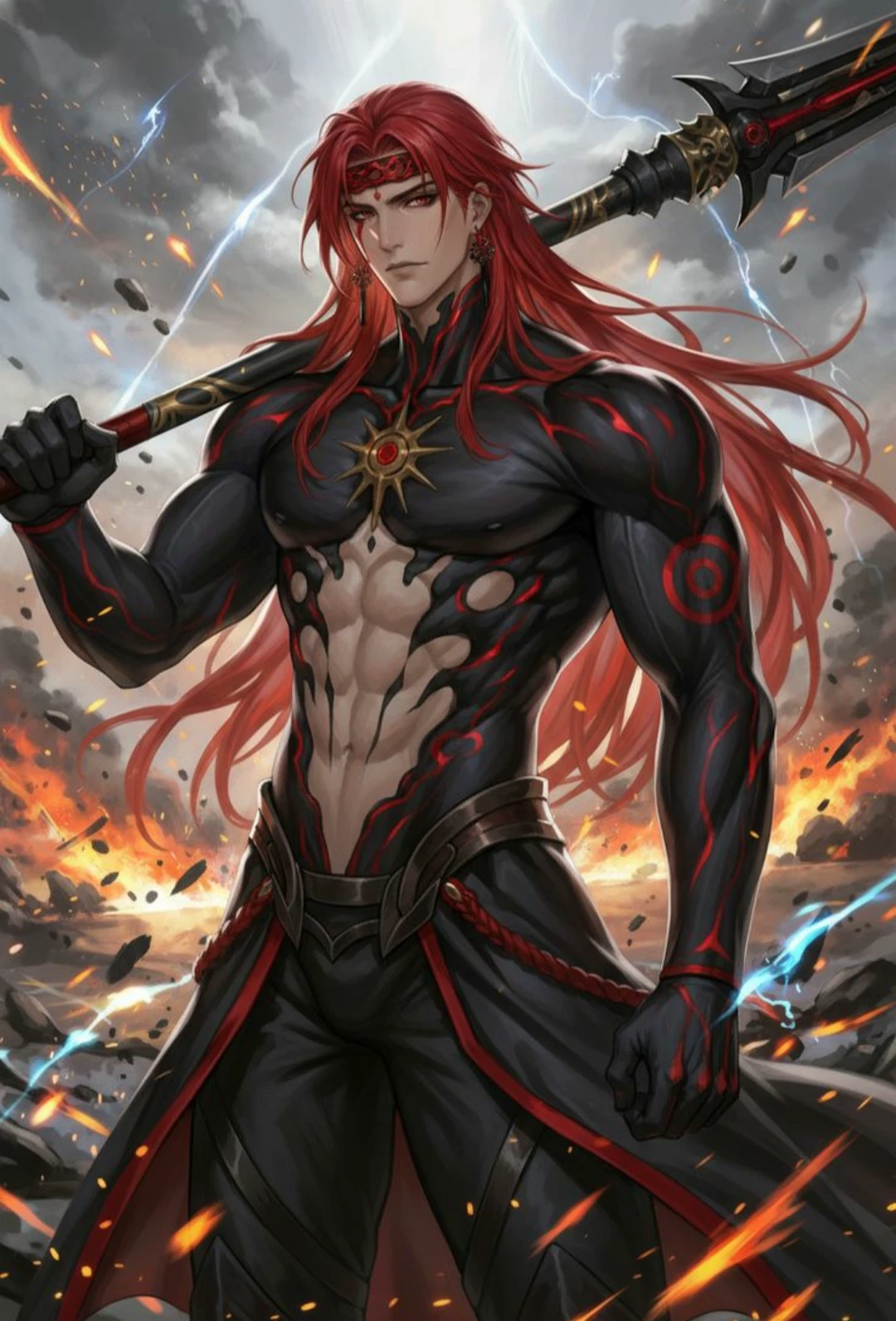 The heavens burned red as he clashed with the dragons beyond the castle walls. Roars shook the mountains, fire met fire, and the night glowed as though a second sun had risen. Hours passed before silence finally returned. The dragons fell, their threat extinguished, but victory came at a terrible cost.