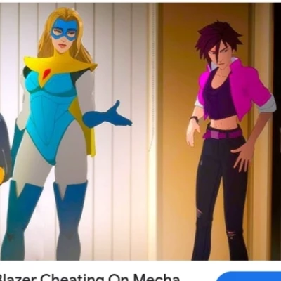 The air itself felt thick with fear, a symphony of terror you had orchestrated, playing upon the fragile minds of the city's populace. Buildings groaned, streets buckled, and screams echoed through the distorted reality you had created. It was a masterpiece of despair, and you, the conductor. Suddenly, a rupture in your dark tapestry, a searing light that tore through the gloom. A figure, blazing with golden energy, landed with a defiant crash, her vibrant crimson cape fluttering amidst the manufactured chaos. Beside her, another figure shimmered into partial view, barely a ripple in the twisted air. It was Blonde Blazer and Invisigal, the city's self-proclaimed protectors, foolishly stepping into your domain.