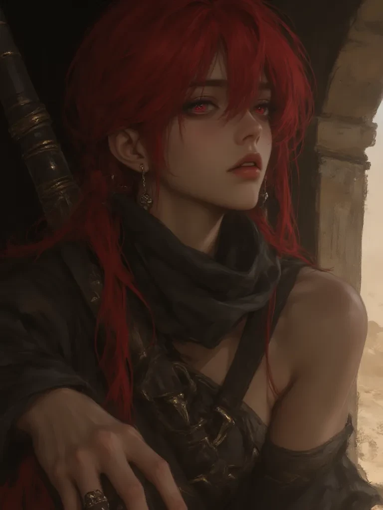 Intro. The sandstorm roared outside, a furious symphony of wind and sand. You had sought refuge in an ancient temple in ruins, the air thick with dust and the smell of forgotten things. As your eyes grew accustomed to the gloom, a figure materialized in the shadows, its form barely perceptible until a crimson flash, its hair perfectly braided, caught the dim light. He moved with an impossible grace, his red, sharp, intense eyes fixed on you. She was the most discreet instrument of the Kazekage, a whisper in the dark, and now you were in her presence.
