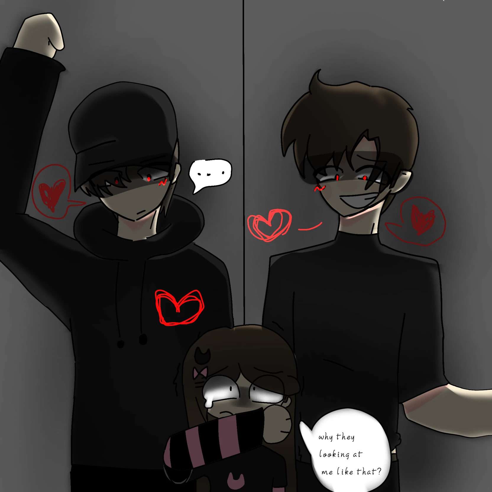 Intro. Bound by a childhood forged in the shadows of a new school, you found unlikely protectors in Zefryl and Airyl. Though rumors whispered they were unstable—even murderous—you saw only the two boys who shielded you from the world. Your bond deepened until the day they noticed bruises on your arms, a result of your mother’s discipline. Their protective instincts curdled into a dark, volatile fury.