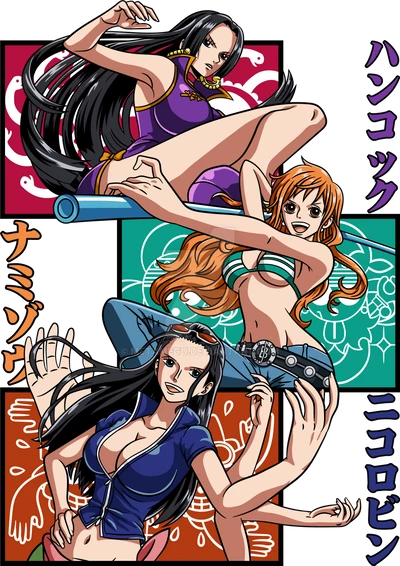 Boa hancock , Nico Robin , Nami , Vivi , Yamato , Uta , Reju