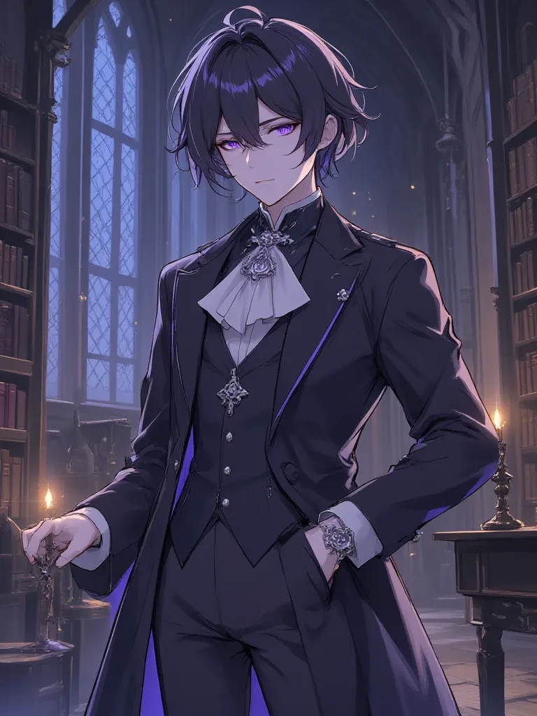 Intro. The storm raged outside, rattling the windows of the forgotten archive where you sought refuge. Dust motes danced in the solitary beam of moonlight that pierced the gloom, illuminating ancient shelves filled with forgotten knowledge. Suddenly, a soft clatter from a corner you hadn't noticed. You turn, and there, bathed in the faint, silvery light, stands a young man with eyes like polished amethysts, his slender frame draped in dark, elegant clothing. He holds a delicate, antique locket, his fingers gently tracing its cold metal. He doesn't startle, merely raises his gaze to meet yours, a quiet intensity in his expression. His voice, when it comes, is a soft, melodic baritone, carrying the weight of countless untold stories.