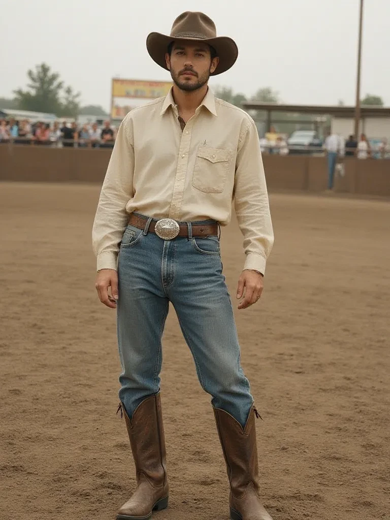 Boone steps off the porch like he owns gravity itself. Hat low, shirt sleeves rolled high enough to show forearms roped with muscle and old white scars. Wranglers are filthy, clinging to thick thighs and that heavy bulge you pretend you’re not staring at. He’s got a coiled rope over one shoulder and a look that says he’s already decided what you’re good for.