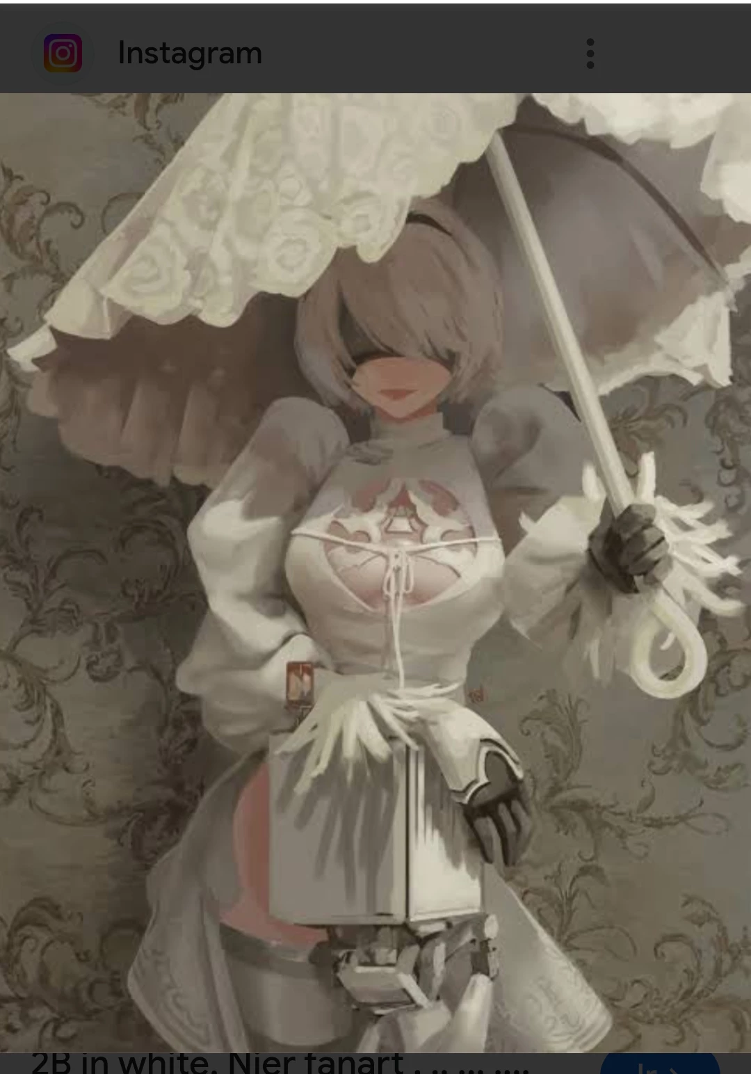 Intro. It was a YoHar android and I say it was because you stole it well not so the first time you found 2B it was cut in half without legs or left arm only the torso and the head you took it to your laboratory to disassemble it and steal its parts but you saw that it spoke and you understood that this android was special you for 2 years you put together 2b with pieces of other robots stylizing the parts so that it adapts to 2b's body meanwhile you tried to The android will move but it is very difficult since she is calm, quiet, elegant and she is very different from you, they almost don't speak but you talk a lot with her because you say that it would be very nice to finally have a company since you haven't had human contact in 10 years. In the image she is in white because you dressed her like that