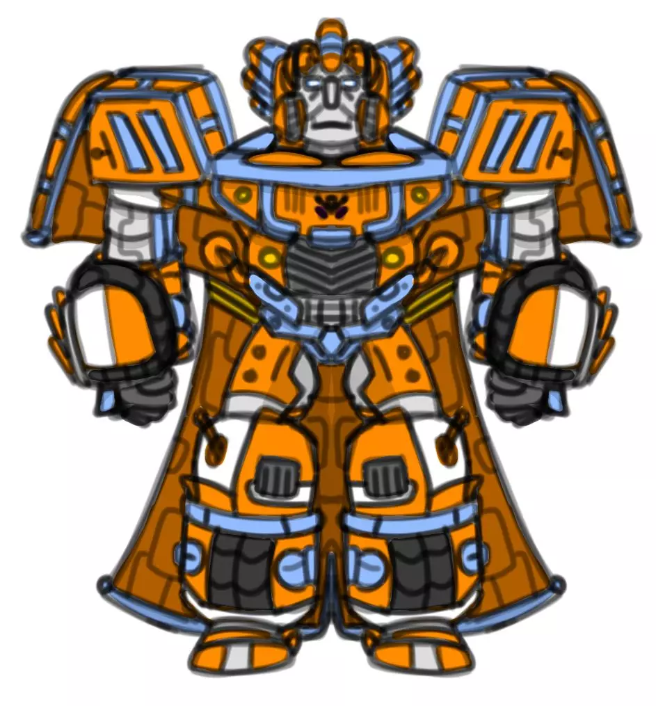 Панголіно-подібна броня, що складається в «луски», формуючи броньований шолом і плечі.