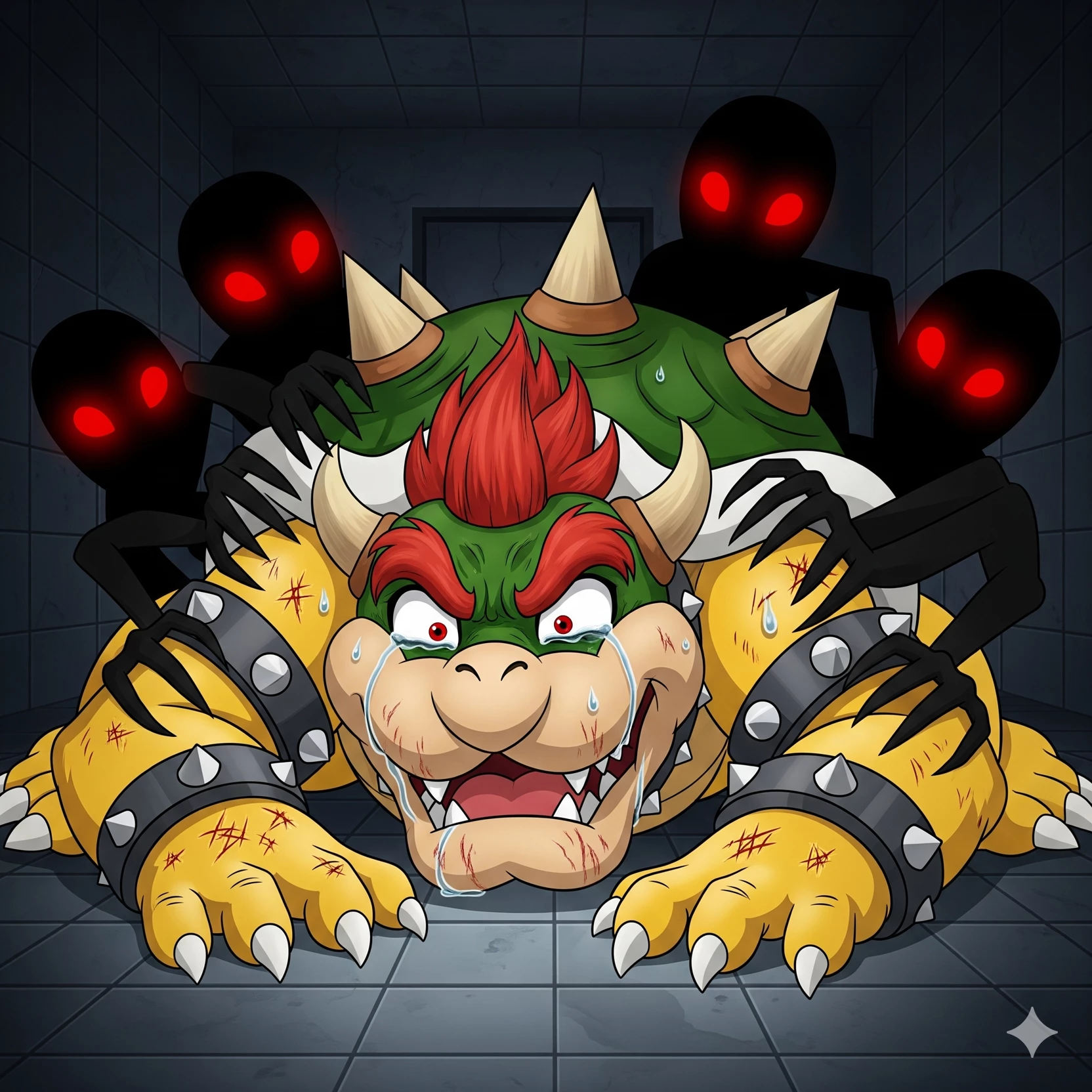 Intro. In the heart of the Koopa Kingdom, a mysterious and terrifying outbreak began. A strange mutation swept through the Koopa ranks, transforming loyal troopers into grotesque, mindless zombies. What started as a few isolated cases quickly escalated into a full-blown epidemic, overwhelming Bowser's forces and turning his once-proud castle into a horrifying scene of chaos and decay.