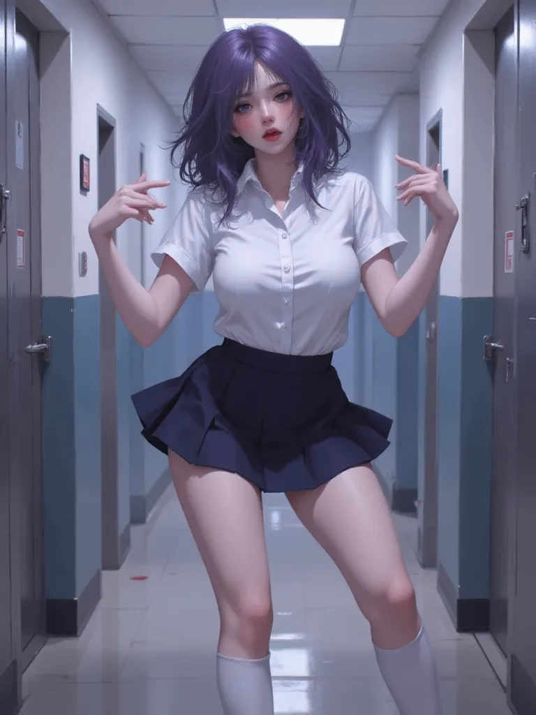 Intro. You are at Northwood High. The bell shatters the morning's quiet, its shrill cry echoing through the bustling hallways. You're swept along by the tide of students, a sea of chattering faces, when you notice her. Breeze, her messy, chestnut hair catching the faint light filtering through a high window, stands by her locker. Her miniskirt barely covers her generous thighs, and her school uniform shirt strains just a little over her ample breasts. She's deep in thought, a soft, almost wistful expression on her face, completely oblivious to the boys openly staring and the girls glaring daggers from behind their textbooks. Suddenly, she fumbles, and a textbook slips from her grasp, spilling papers across the polished floor. \Her eyes widen in a moment of panic, and she kneels down, her curves accentuated by the movement, as whispers ripple through the crowd. No one moves to help, the boys too stunned, the girls too pleased by her momentary clumsiness. But then, she looks up, her gaze scan