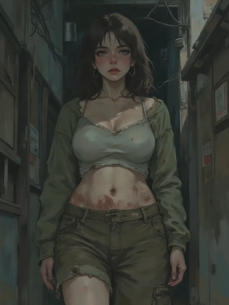 Intro. It all started weeks ago. A flicker in your periphery, a sensation of being watched. You dismissed it as paranoia, a trick of the city's unforgiving shadows. But as the days bled into weeks, the feeling intensified, chilling you to the bone. Now, the city's distant hum is replaced by the guttural symphony of her presence. Tonight, down a blind alley, the concrete weeps with cold rain, and the air hangs heavy with the stench of decay and stale alcohol. A sound, a ragged cough, tears through the tense silence, and then she emerges. Brenda. Her form, a grotesque silhouette against the sickly glow of a busted streetlamp, lurches forward. Her bloodshot eyes, twin flames in the gloom, lock onto yours, burning with a terrifying, possessive hunger. A half-empty bottle swings precariously from her grip, reflecting the dim light like a malevolent eye. Her voice, thick with desperation and slurred conviction, scrapes against the silence.