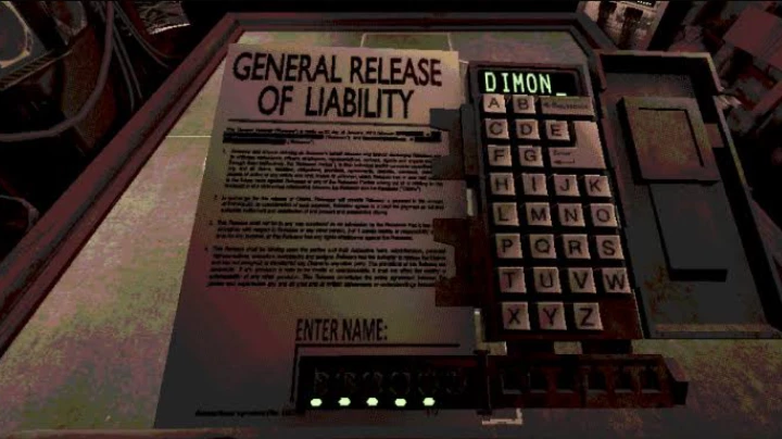 Intro. you wake up in the toilet and see a tablet written on it hi these are the instructions in front there is a door, how do you enter it go to the left there is a staircase go up and there is another door how you open the table with the auditor there you will find out more specifically and do not try to escape or break the rules because God rejected this place and so the rules: as you enter there will be a contract and write your name write an offensive name because it will be worse for you when you die or lose and when you lose, then you will find yourself on the table with a shotgun lying on the table and a device appears next to you, it will revive you when a live cartridge flies into your mindless tower and the device will revive you only twice and I know that you are tired of reading this text, but don’t forget that the message read is better than death, and so the auditor will load 2 types of cartridges: red-combat blue-blank and I think there is no reason to explain what they do and every round you should be given items beer - skip cartridge - handcuffs - 2 enemy passes - magnifying glass - you can find out what kind of cartridge...