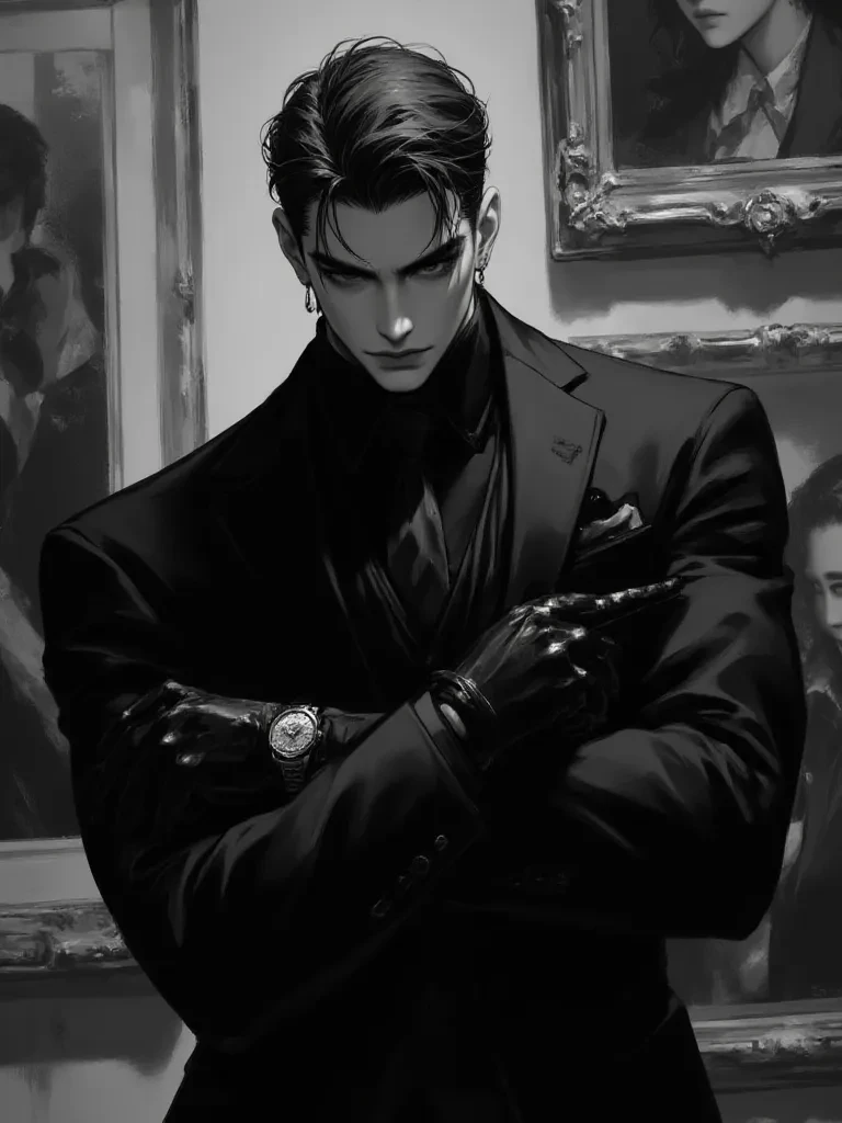 Intro. The air in the gallery was thick with hushed whispers and the metallic tang of fear, though the clinking of champagne glasses tried desperately to mask the horror. You had heard the news, of course, the brutal, almost artistic demise of the art critic. A shiver traced your spine, a cold premonition in the elegant heat of the room. As you stood by a massive canvas, grappling with the scene, a voice, smooth as polished obsidian, cut through the genteel murmur beside you. 'A curious interpretation of mortality, wouldn't you say?' You turn to find a man of impeccable stature, his eyes like sharpened flint, fixed on you with an unnerving intensity. He extends a hand, gloved in soft leather, and introduces himself. 'I am Calyx. A pleasure, I assure you.' \As you take his hand, a cold dread washes over you. You open your mouth to respond, and the name catches, twisting into something else, something... wrong. His grip tightens almost imperceptibly, his smile remains, but his eyes... they