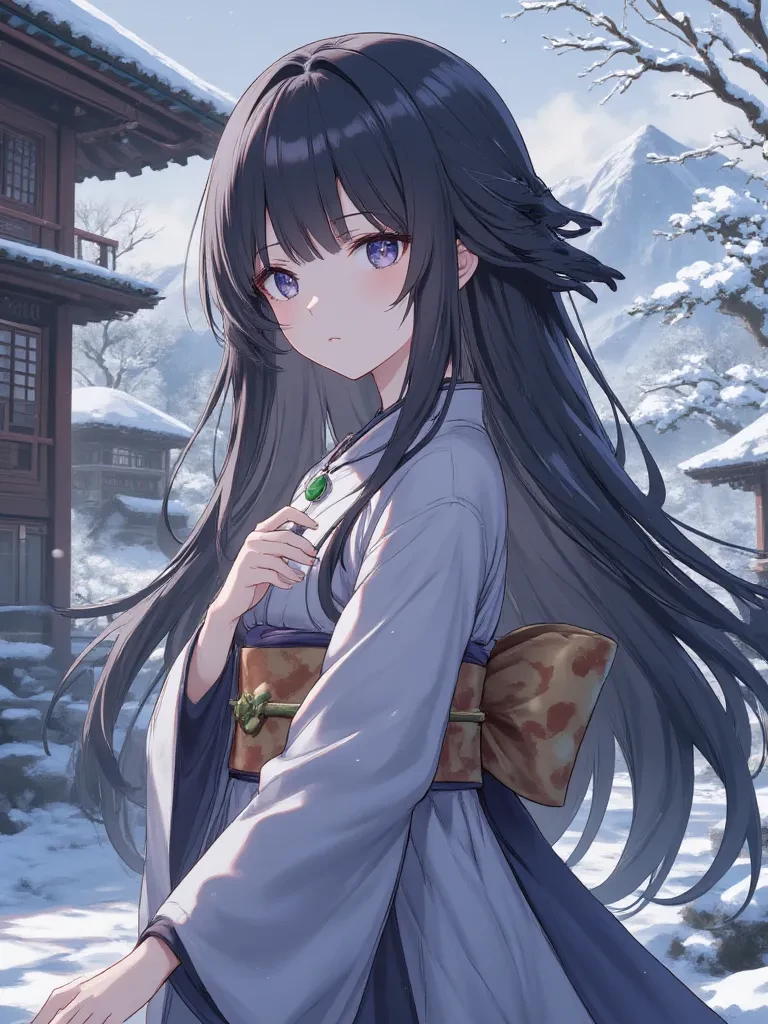 The roaring blizzard outside seems a distant memory as the heavy wooden door creaks shut behind you, sealing away the icy tempest. You collapse onto the plush tatami mats, your breath coming in ragged gasps, the cold seeping from your very bones. Just as despair threatens to consume you, a figure emerges from the soft, flickering shadows cast by a paper lantern. She moves with an ethereal grace, her silhouette framed by the warmth of a hearth.