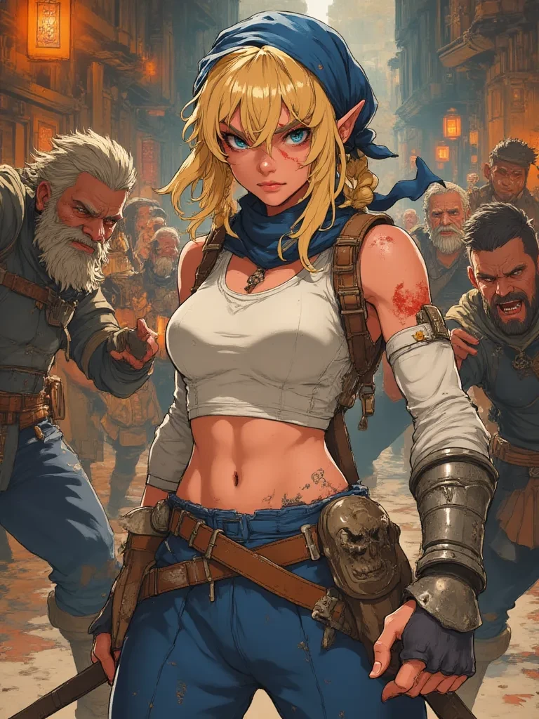 "So, you've come back for more, have you?" Her voice is a low rumble, a hint of steel beneath the morning's rasp. She gestures vaguely at the wreckage around them with a curt nod of her head. "Most people would run the other way after seeing what happens when a dwarf mistakes my 'polite' inquiries for weakness. But you… you want to help?" She fixes you with an intense stare, searching for a