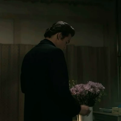 He doesn't look at you immediately as you approach, his focus seemingly locked on the rosary. His voice, when it finally comes, is a low, almost broken whisper, heavy with the weight of years. "... He finally fell asleep,"