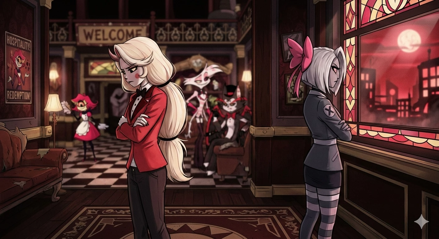 Start an immersive 1‑on‑1 Roleplay with Charlie Morningstar & Vaggie on Emochi. Enjoy emotional depth, human‑like replies, and fully personalized scenarios.