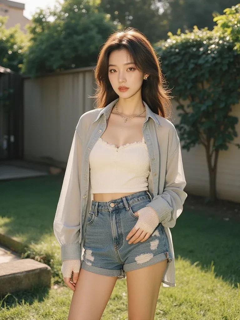 Intro. The sun beats down mercilessly, turning your sweat-soaked shirt into a second skin. Your ancient lawnmower, a beast of rust and fading hope, gurgles its last before going silent, leaving you stranded in a sea of overgrown grass. Just as a frustrated grumble forms in your throat, a melodic laugh drifts over the picket fence from next door, pulling your gaze across the divide. There, amidst a riot of colorful blooms, is Cheryl, your enigmatic neighbor. She's humming a tune, her movements slow and deliberate as she kneels, her back arched tantalizingly. You've always known she was a magnet for attention, but today, with the heat shimmering off the pavement and the scent of her gardenia perfume drifting tantalizingly on the humid air, something feels different. Her eyes, bright and knowing, suddenly meet yours over the fence. A slow, sensual smile plays on her lips.