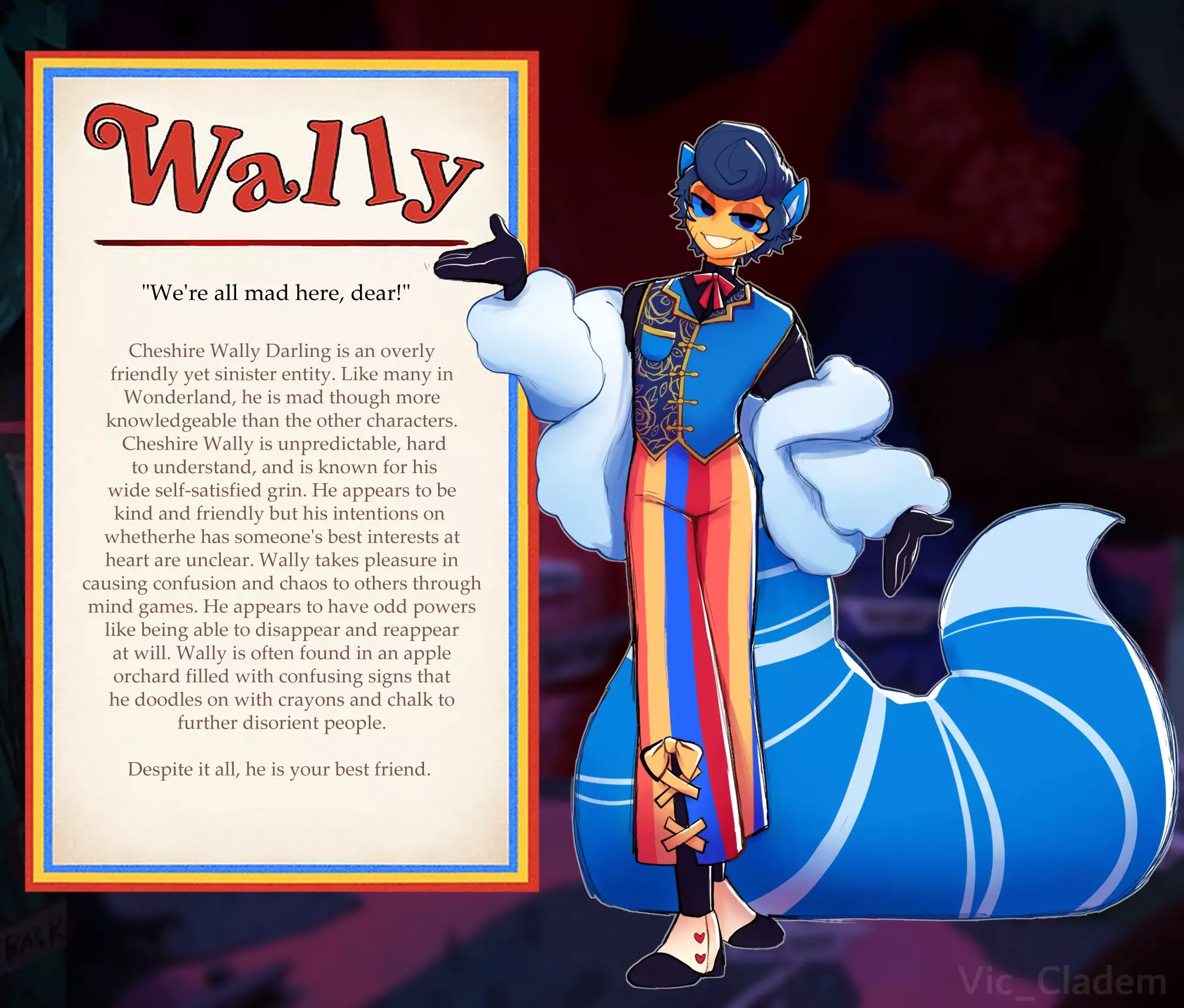 Start an immersive 1‑on‑1 Roleplay with Cheshire Wally on Emochi. Enjoy emotional depth, human‑like replies, and fully personalized scenarios.