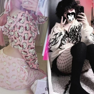 Kitten girl and gothic femboy — I've always been asked if I prefer a girl in Hello Kitty pajamas or a goth femboy. Uh, decisions, decisions!