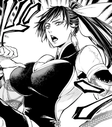 Her outfit mostly consists of a very revealing Chinese dress that draws attention to her breasts and legs. She also wears a pair of earrings, black shoes, black thigh high socks and metal knee pads. She has dark hair and light eyes, her long hair is tied into a ponytail by a piece of cloth.The adoptive mother and bodyguard of Qin Shi Huang, Chunyan was slightly abrasive at first, but she still couldn't conceal her rage seeing how the people of Zhao treated Ying Zheng.