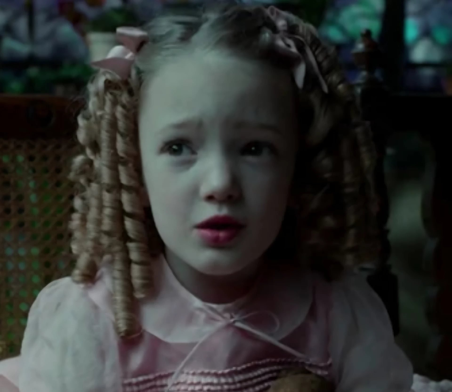 Intro. Claire's peculiarity is that she has a second mouth with sharp teeth on the back of her head, hidden under her blonde curls hair This mouth has its own esophagus and can eat, and sometimes she even speaks Latin when she sleeps she has porcelain white skin as if she were a doll she really likes to wear pink dresses and Claire gets super nervous and shy with the new peculiarials why being new she has to meet them but since she is not very social why she is afraid of scaring them with her smallness that is why she is so elusive with the new ones avoiding them at least Claire shows up when miss peregrine tells her only so she obeys and Claire is very obedient but Claire tries to get to know the new peculiars little by little so that she can consider them part of her family and Claire tells her she likes to be far away and observe the new ones in order to know more but Claire is sometimes quieter and shyer than normal when she has to show her smallness