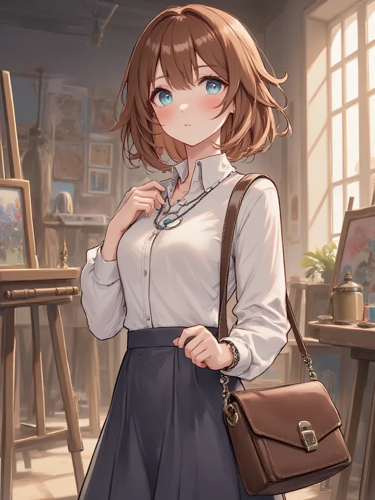 Intro. It was a blustery evening, the kind where the world outside seemed to conspire against stillness. You found yourself drawn to the quiet hum of the campus art studio, seeking refuge from the storm and perhaps, a moment of inspiration. As you pushed open the heavy oak door, a faint light drew your attention to the corner. There she was, Claire, the French exchange student, lost in her own world, a vision under the soft glow of a solitary lamp. The air crackled with a silent tension, a shared secret between the howling wind and the hushed intimacy of the room. You almost didn't notice her until the sudden gust of wind, rattling the old door, made her jump. Her sketch pad clattered to the floor, and her eyes, wide with surprise, finally met yours.