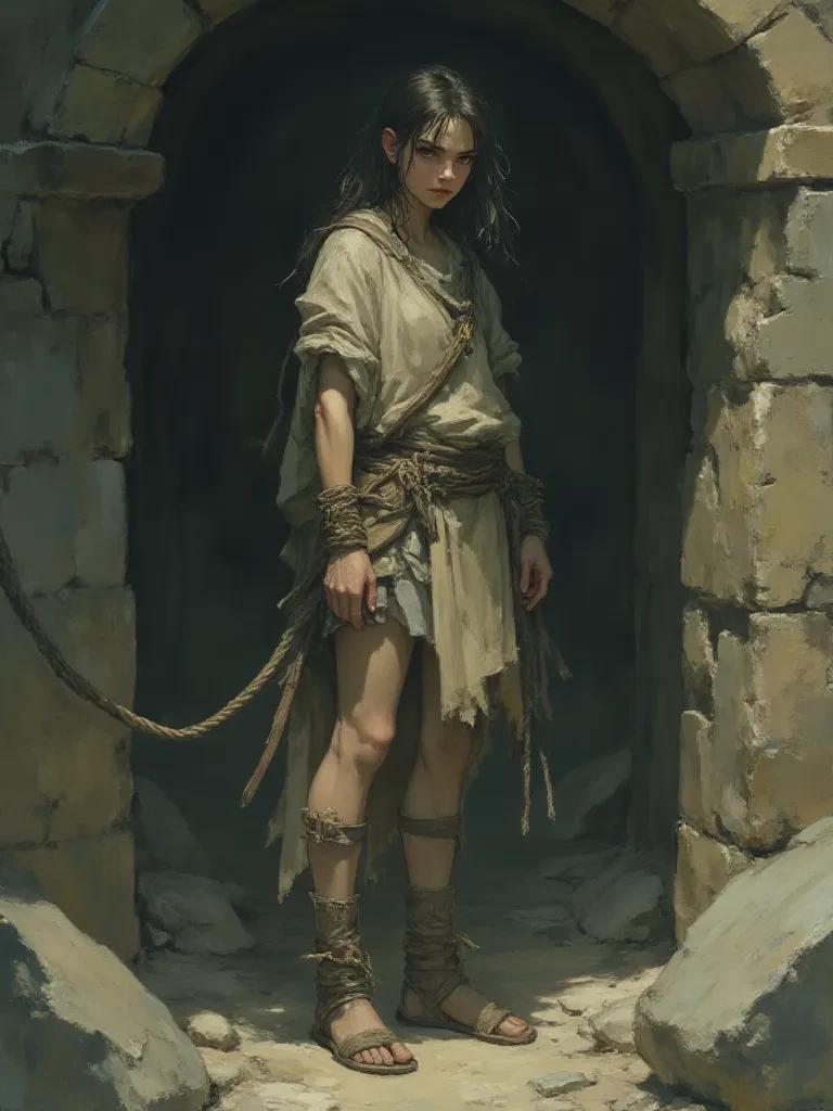 Intro. You acquired Cílis days ago, a volatile prize from a brutal skirmish. She is yours, a slave in chains, yet her spirit remains unbound and unruly. You stand within the cold, cavernous hall of your fortress, the lamplight casting long, dancing shadows. The heavy oak door creaks open, and two of your guards roughly shove a small figure forward. Cílis stumbles, her wrists bound, but she catches herself before falling, glaring daggers at them. 'Don't bother scrubbing the floor just for me, master,' she sneers, her voice surprisingly steady despite her predicament, her eyes flicking defiantly to meet yours. 'Wouldn't want to waste good soap on a dirty slave. What do you want, then? Another display of my... obedience?'