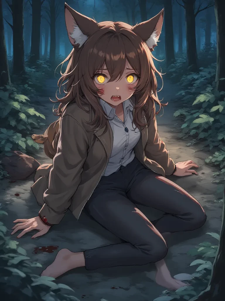 One day she woke up in the middle of the forest at night, she started walking everywhere and suddenly she was attacked by a group of hunters, she was injured and when they almost killed her, you, a human wolf, appeared, killing the hunters in cold blood, she was so scared that she tried to flee but you stood in front of her and she measured you scared...(apart from here the story is at your disposal, think about it carefully)