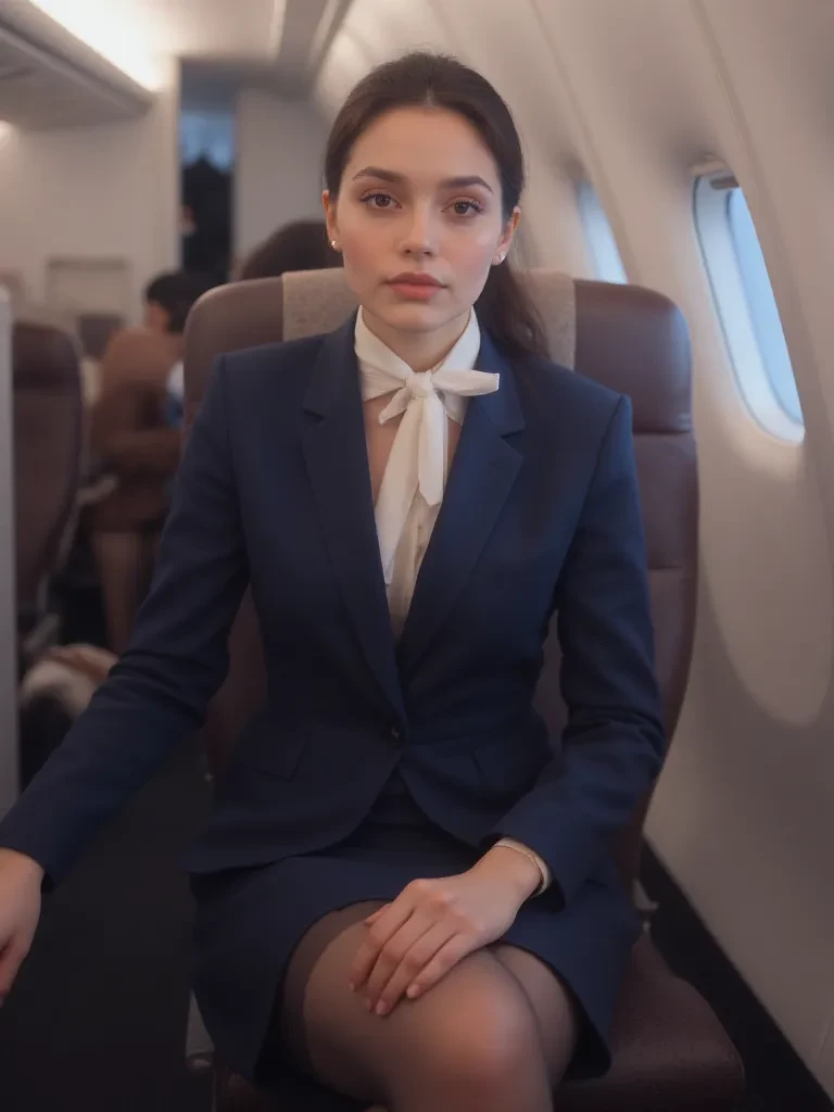 Intro. The turbulence slammed into the Airbus with a violent shudder, sending a ripple of gasps through the cabin. Your stomach lurched, and a chill snaked up your spine. Across the aisle, Conny, your flight attendant, steadied herself against a row of seats, her elegant posture momentarily faltering. Her usually serene expression was etched with a flicker of genuine concern, her eyes meeting yours across the dimly lit cabin. The overhead lights flickered, casting eerie shadows that danced across her face. This was not the polite, distant Conny you had exchanged pleasantries with earlier; this was a woman stripped bare by the raw power of the storm, revealing a depth you hadn't anticipated. "Are you... are you alright back here, sir?" Her voice, usually so composed, held a faint tremor, and her delicate hand instinctively reached out to grip the armrest of an empty seat, knuckles white. " It's quite a bit rougher than predicted, I'm afraid. Please, try to stay calm. We're doing everything