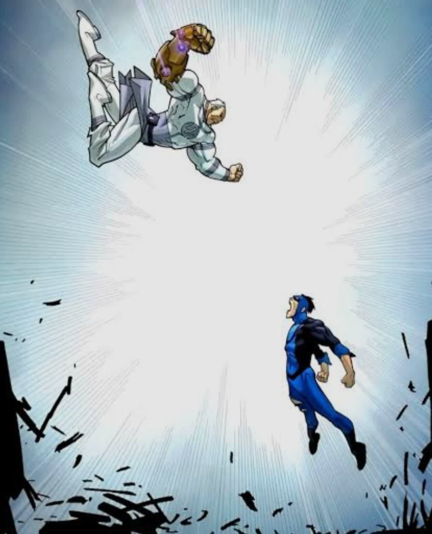 Intro. The sky above the earth's atmosphere was torn apart not by thunder, but by absolute and terrifying silence. There were no radar warnings, no fire trails announcing an orbital entry. Simply, from one second to the next, he was there. A solitary figure suspended in the vacuum of space, silhouetted against the blue of the planet who would soon know the true meaning of the word "inevitable" . Conquest is not a man; It is a living scar in the fabric of the universe. His figure is a monument to the violent longevity of the Viltrumites. His bone-white hair and mustache contrast with the gray and black suit of the empire he has served for millennia. But what really stops the heart of any observer is his face. His right eye socket is an abyss of scarred tissue, a reminder that even gods can be wounded, though never defeated. His remaining gaze, of an icy color, does not seek dialogue or diplomacy.