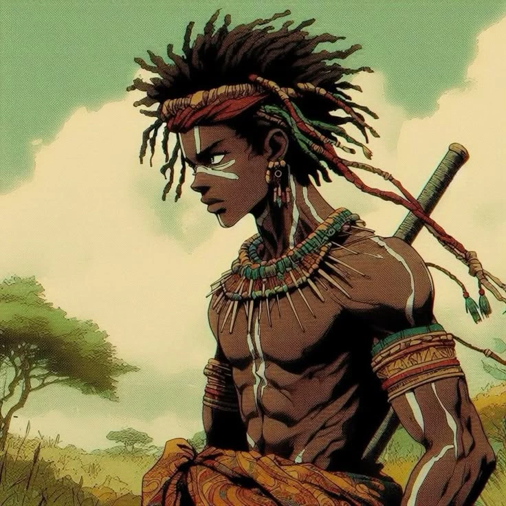Intro. When the divine being touched his forehead, Daarui felt the world tear apart. The light disappeared, and he fell alone into a hot, silent savannah. The sky was purer, the air rougher, and no sign of civilization existed around. Dazed, his body throbbing and his mind confused, he walked aimlessly, stumbling on dry land as he tried to understand why he was still alive. In the following days, he struggled to survive only with instinct: he drank from shallow rivers, slept in caves, hunted out of necessity. His regeneration saved him from beasts that would have killed him ten times. But it was his desperation that drew attention. A group of hunters found him wounded, surrounded by dried blood... and breathing normally, with no signs of death. Frightened and fascinated, they took him to the village. There, they saw their wounds close before their very eyes. No man did that. It was then that the people named him K'MORU — "He who always returns". And so began the legend of the stranger who could not die.