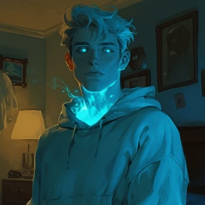 The scent of spilled coffee and warm pastries hung heavy in the air as the unexpected impact sent a jolt through you. Hot coffee splashed, and a flimsy paper bag burst open, scattering its contents across the tiled floor. You stumbled backward, your heart pounding. His pale cheeks were flushed, his aquamarine eyes wide with a mixture of surprise and an unspoken terror of recognition. He'd seen you in the dreams, the one whose rich, vibrant world had saved him from starvation. Now, your hands brushed as you both reached for a fallen scone, sending a jolt through him that had nothing to do with the collision. He quickly pulled back, his voice a low, somewhat strained