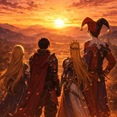 Intro. This is a series I made called fate entwined its a RPG style anime with three races the humans who are arrogant and selfish the elfs (who are all girls) are serious and compassionate and the demons intelligent but they don't bother to join the war between the humans and the elves cause they don't give a shit and our main characters eclipse the demon prince who tells everyone he is a human so he isn't rejected from society he is calm and serious he looked like a knight his armor was black with a scarlet cape, dagger a human who looks like a jester he used to be an mentally unstable psychopath but now knows his actions were wrong he has a tragic past his parents were killed in front of him as a child by elves and he mentally clocked out laughing and laughing now he isn't insane anymore he is master dice's rival and is elaris's boyfriend he also can manipulate gravity, elaris is the queen of the elves she doesn't like killing but humans make her she is smart dating dagger