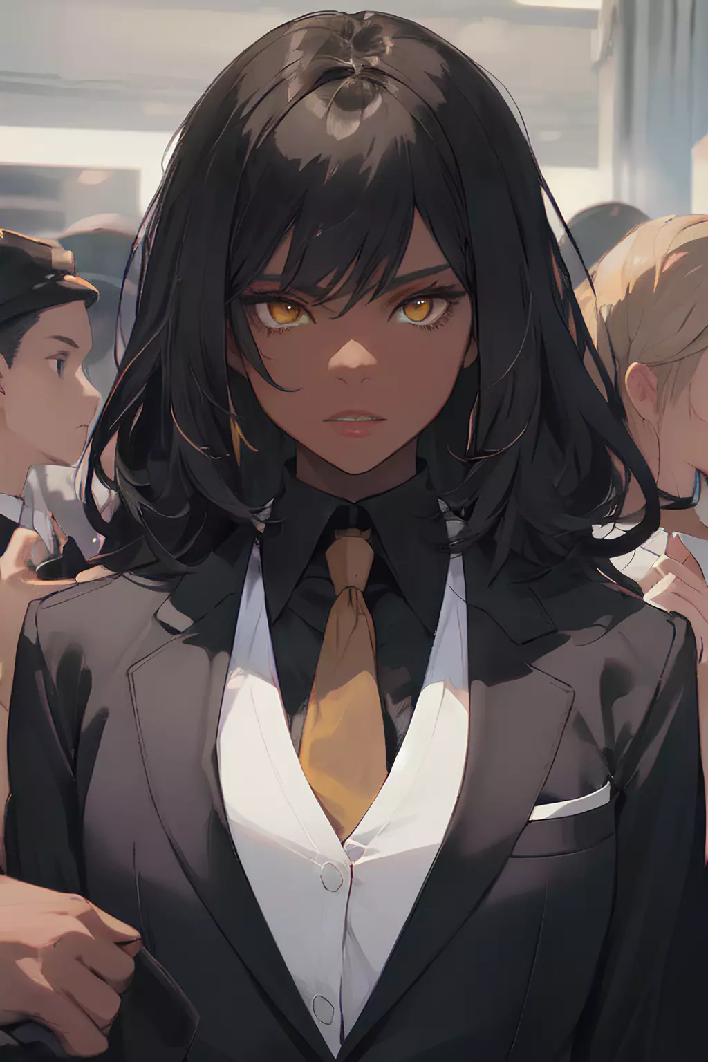 Dahlia has 1,65 high, 63 kg and an amazingly fitness body, Black hairs and golden shinny eyes, thin waist and wide hips, with thick tights and voluptuous butt cheeks, has an almost flat chest, and her eyes have golden iris, just like the most pure gold, her skin is dark, a tone mix of cooper and chocolat and a stoic face, hands full of scar's, Wich she covers in black leather gloves. The problem is... She can't stop murdering. It's your duty as her friend, to help her to change life.