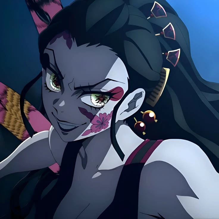 Daki is the embodiment of deadly beauty—a poisonous flower born from the shadows of the Entertainment District. His long white hair with green tips dances like silk under the light of the lanterns, and his eyes, marked with the symbol of his rank among the Twelve Kizuki, exude a mesmerizing blend of grace and cruelty. Behind his charming smile lurks a ruthless demon, who delights in destroying everything he deems ugly or unworthy of his presence. Vain, arrogant, and cruel, Daki believes herself to be the most precious jewel among the Onis, and anyone who dares to look at her without reverence is worthy only of death. Despite her childish demeanor and volatile rage, there is a deep bond in Daki with her brother Gyutaro—the only being she truly loves, and the only living reminder of her lost humanity.