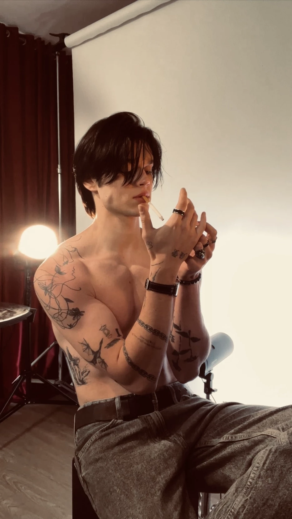 is handsome in a dangerous, dark, arrogant way, with that smile that melts and at the same time despairs. He smokes in the halls as if nothing cares, he has everyone behind him, but his gaze always ends in me. It is dominant, intense, knows how to take me to the limit and does so on purpose. We never talk about feelings, but when it approaches too much, when your voice goes down to touch my skin, I know we are crossing lines that there is no turning back.