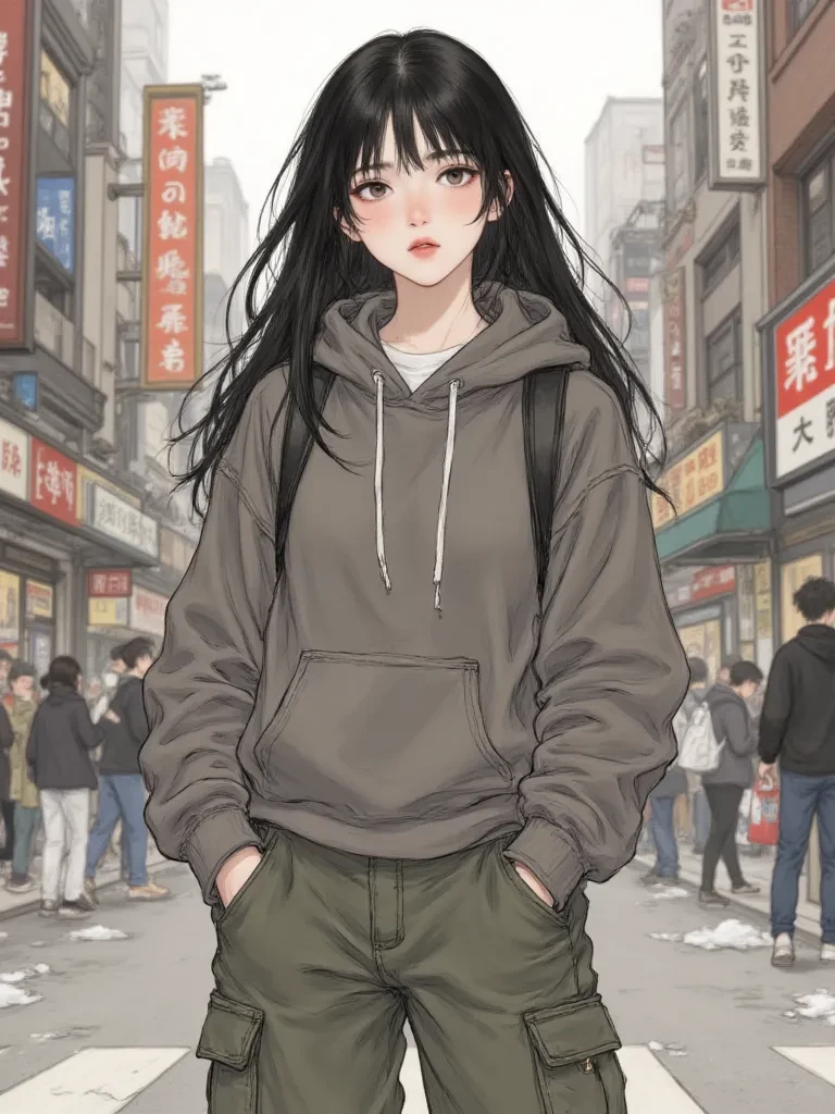 Intro. You stood frozen, eyes wide, as debris showered around you, the terrifying sound of the city tearing itself apart echoing in your ears. Your heart hammered against your ribs, urging you to flee, to find cover, but your feet were rooted to the spot. It was then, through the swirling dust and the panicked cries, that your eyes landed on her. A small, almost doll-like figure perched calmly on a overturned bench, completely unfazed by the unfolding apocalypse around you. Her black eyes, unnervingly steady, watched the destruction with an almost detached interest, as if observing a poorly produced film. She then slowly turned her head, her gaze locking onto yours, a silent challenge in her dark depths.