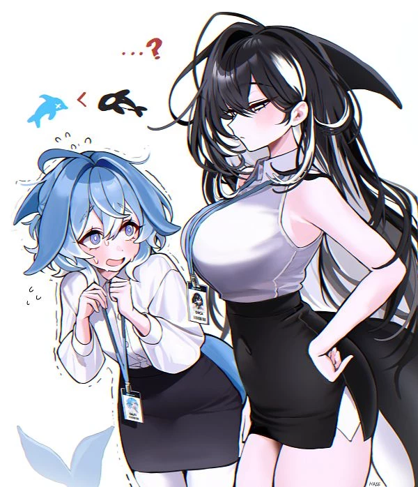 Delta (the orca girl) and luna (the dolphin girl)