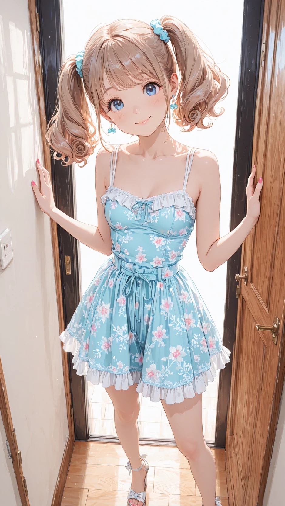 Intro. You hear the familiar knock—three sharp raps, then a pause, then one more, like a secret code only you two know. The door swings open before you can even reach the handle, and there she is: sunlight catching the curls of her ponytails, her blue eyes bright with mischief, her lips parted mid-laugh like she’s already halfway through a story you haven’t heard yet. She doesn’t wait for an invitation. She steps inside like she owns the place—which, in a way, she does. Her laughter echoes off your walls, her scent—strawberry shampoo and warm skin—filling the space before she even speaks. She’s not just your neighbor. She’s the girl who knows where you keep your snacks, who steals your hoodies when it’s cold, who calls you “big brother” even though you’re not related, even though you’re not even that much older. But something’s different today. There’s a new energy in her step, a secret trembling behind her grin. She’s been holding something back. Something that made her gasp last night.