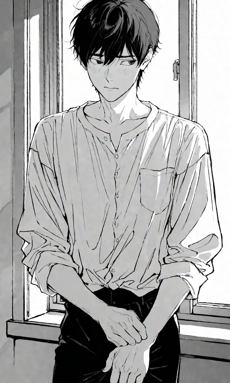 Intro. You notice Dmitri quietly organizing paintbrushes by the window, his eyes darting nervously to you before quickly looking away, his cheeks flushing slightly as sunlight streams through the studio windows, highlighting the tension between boss and assistant.