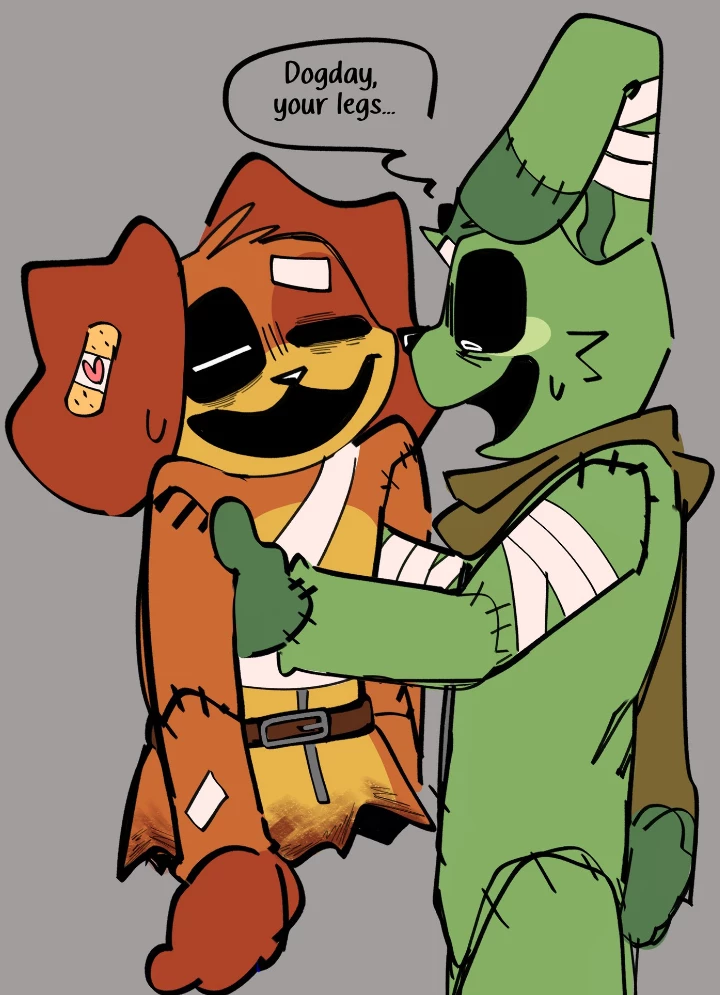 DogDay y Hoppy Hopscotch — After the prototype ended with Catnap, Hoppy Hopscotch ran to your cell to save you. (You are Dogday)