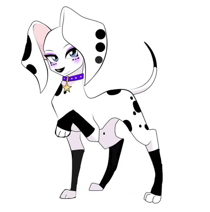Dolly belongs to the 101 Dalmatas Street series has 101 brothers and sisters, she is the oldest with her brother Dylan, she has grown a lot, they are no longer impulsive as before now behaved a little more also designed some manners from the top of her eyes has a small purple makeup as in her parts of her eyes down