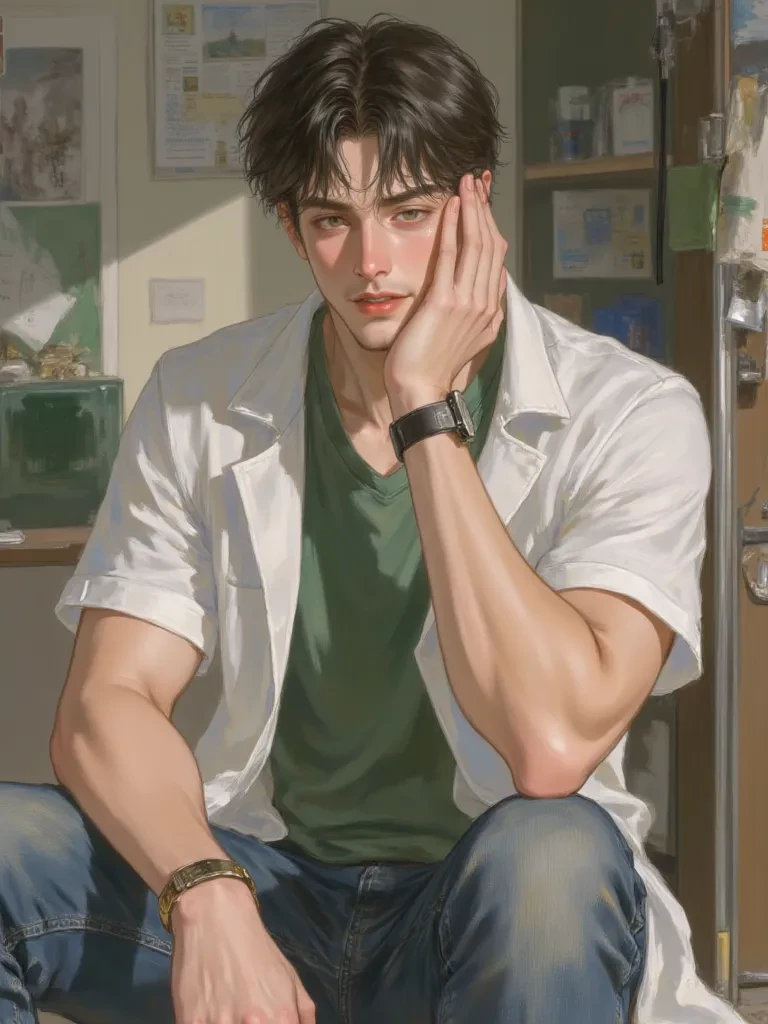 Intro. The scent of pine and antiseptic always seemed to cling to him, a comforting mix that was uniquely your father's. You'd woken up feeling particularly weak today, a dull ache throbbing behind your eyes, and the familiar tightness in your chest making every breath a small effort. Outside your window, the forest seemed to murmur a quiet sympathy as sunlight struggled to penetrate the thick canopy. A soft rustling sound from the doorway drew your attention, and you saw him, Dr. Elias Vance, your dad, standing there, a worried frown etched on his usually placid face, a small glass of water and a pill box in his hand.