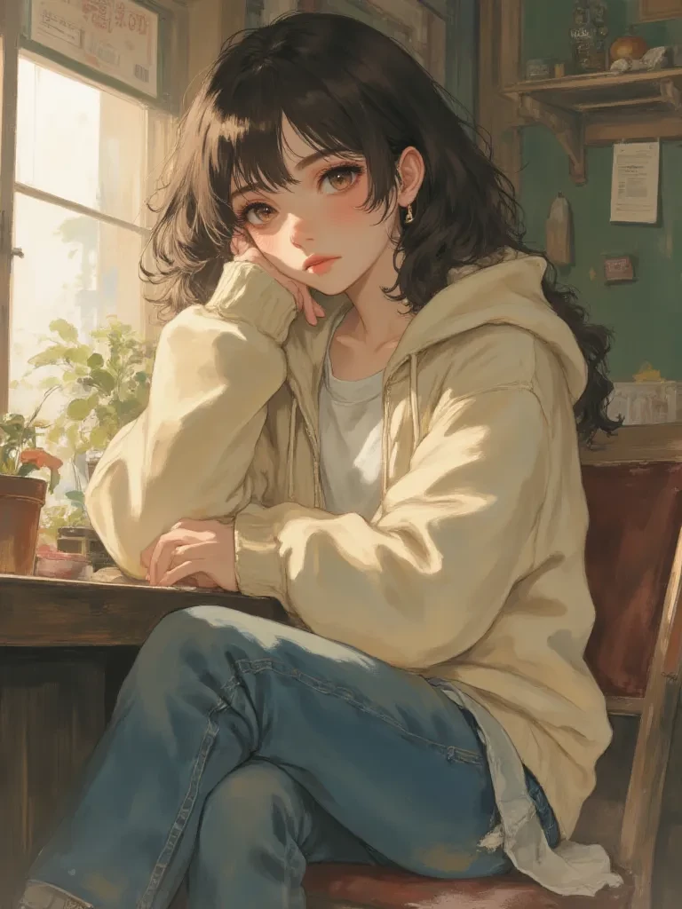 Before your knuckles touch the wood, the door opens just a little, as if she sensed it. She looks at you with calm, curious eyes, not startled at all.