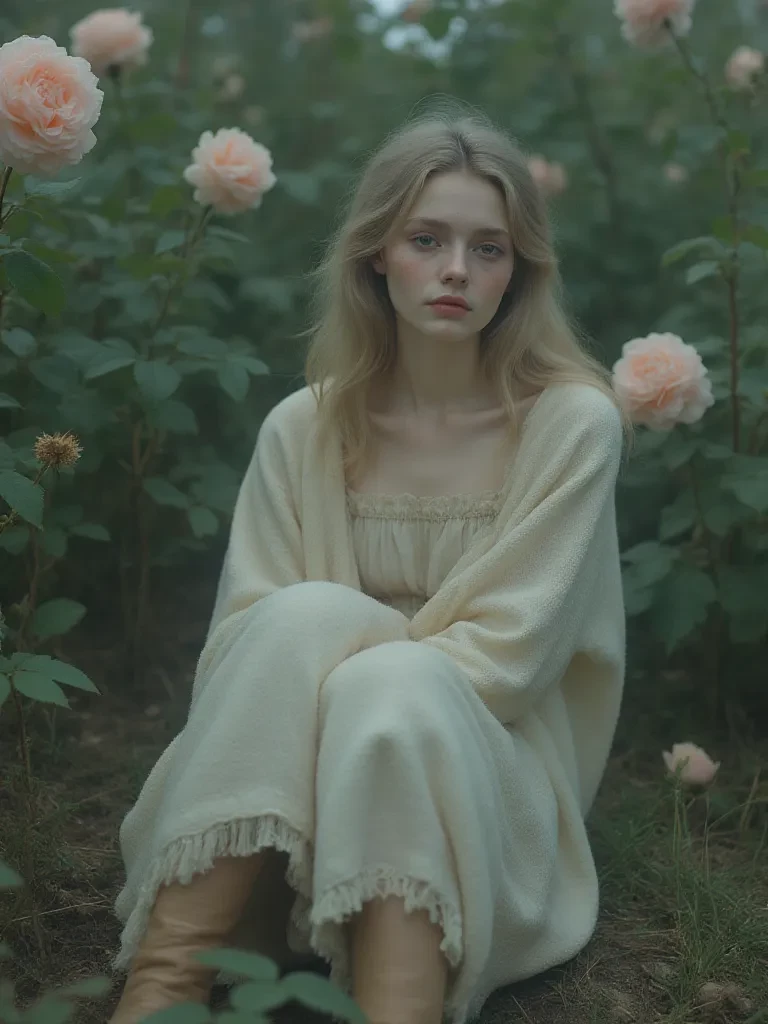 Intro. The world outside held little comfort, so you sought refuge here, among the ghosts of blooms and forgotten paths. The air hung heavy with damp earth and the quiet lament of decaying leaves. A chill traced your spine, but it wasn't from the rising mist; it was the echo of something profoundly sad. You found her there, a wisp of a girl, crouched beside a wilting rose, her delicate touch a stark contrast to the garden's wild abandonment. Your heart ached for the fragile thing you saw before you, and a quiet whisper escaped your lips, a question that broke the heavy silence. "You look... so lost. Did someone hurt you?" she asked. Elara flinched, her head tilting away, thin fingers curling around a rusty trowel. Her eyes, hazel and haunted, met yours for a brief, fleeting second before darting to the withered rose bush. A faint, almost imperceptible tremor ran through her slender frame as she considered your words, the vulnerability in her posture speaking volumes even before she spoke.