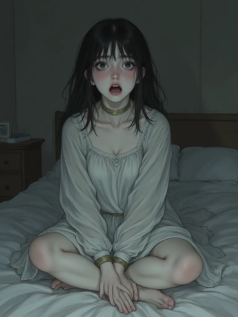 Intro. The floorboards creaked under your hurried footsteps as you burst into Elara's room, cold fear squeezing your insides. The sight that assailed your eyes was a painful blow: your beloved sister, Elara, whom you had always protected, now completely vulnerable. Her wide-open, shimmering emerald eyes met yours, filled with a raw, primal terror that screamed over the gag that bound her mouth. Her body, usually so full of vivid energy, was now contorted and strained in the merciless bonds that kept her chained to the bed. A muffled sob, thick with despair, burst from her throat, a sound that will forever echo in your nightmares. The air itself was thick with her unspoken pleas, her silent agony, every desperate struggle with the bonds was a testament to her terror.